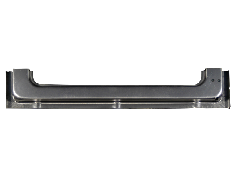 Inner, bottom repair section for the right side cargo door as viewed from the outside of the vehicle. This is the same for the right cargo door on left and right hand drive vehicles and is also used for the cargo door on splitscreen double cabs. The repair panel is approximately 110mm tall and includes the guide for the bottom locking rod. Laser cut from 1mm steel and pressed in house.